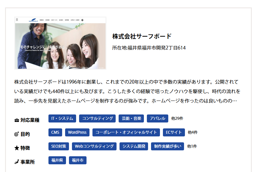 株式会社サーフボードが『 ホームページ制作.jp』の『福井県に所在地のあるホームページ制作会社』という特集記事にて掲載されました。